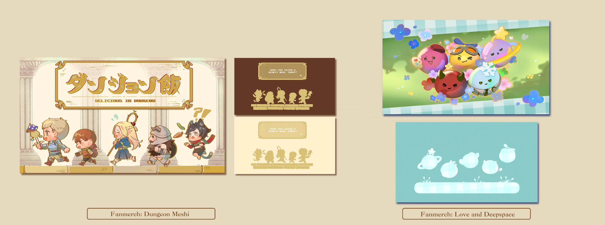 Various chibified fanworks from medias the artist have enjoyed, and some were made into merchandise!