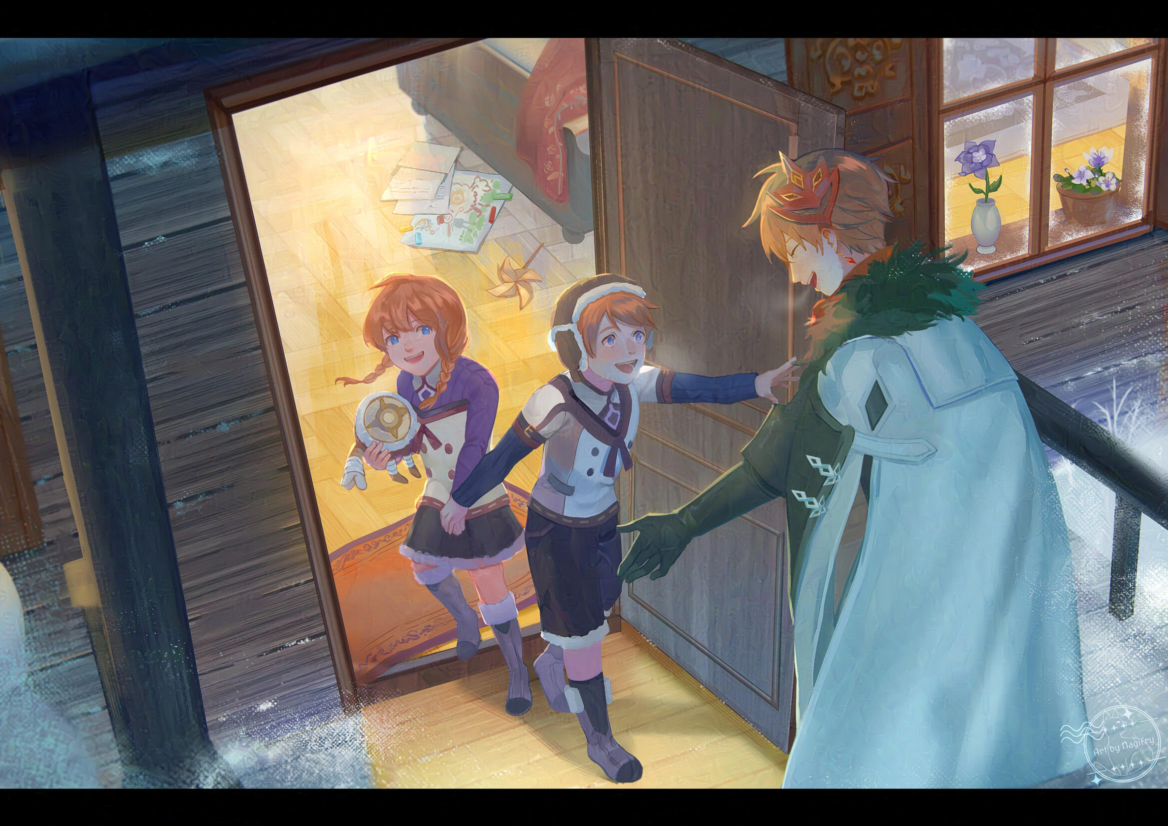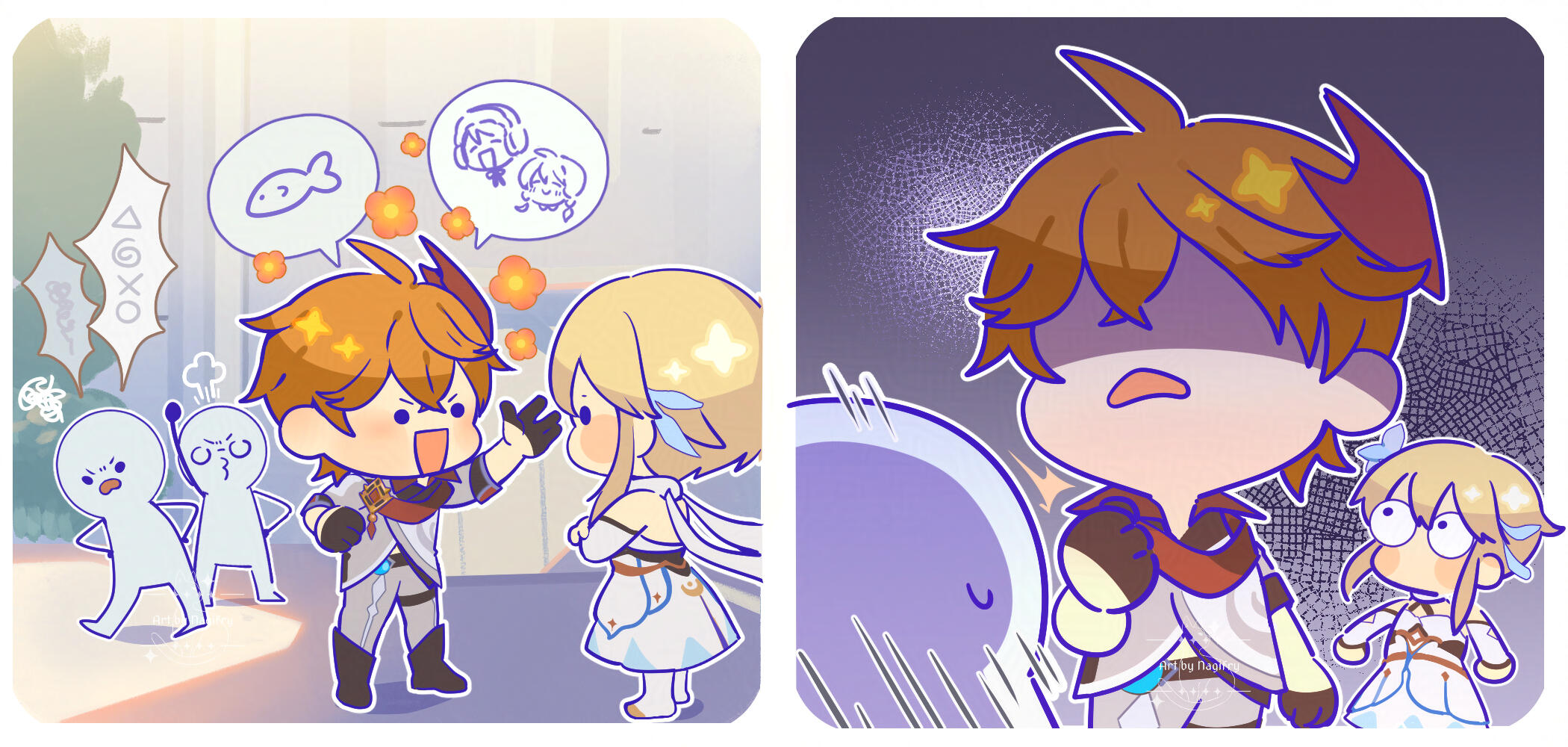 Subjects depicted are the artist's original characters.
