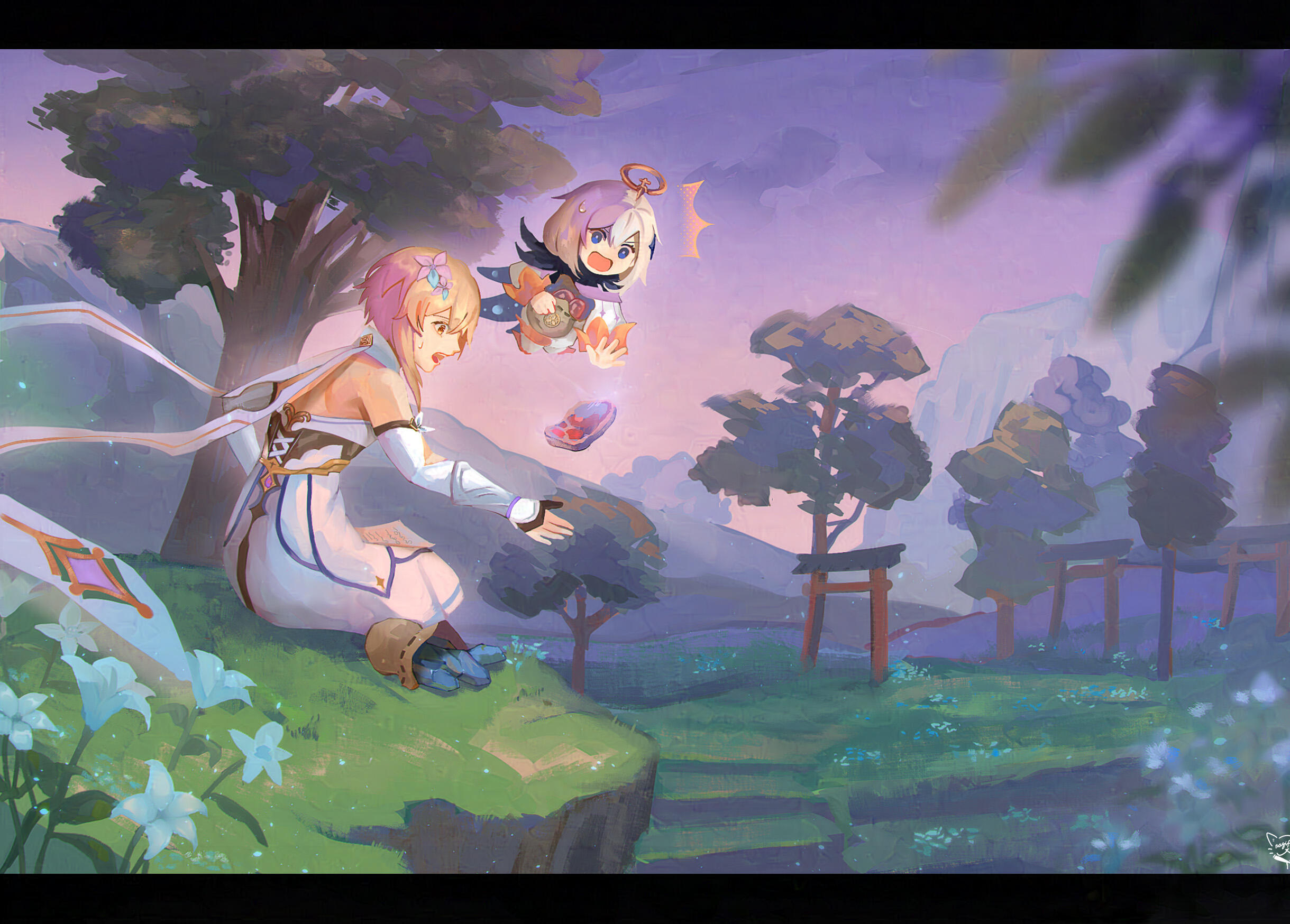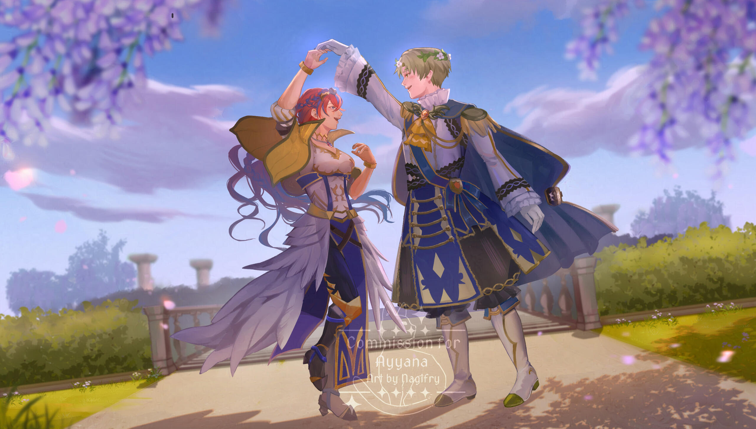 ⬥ Custom painting curated and painted with the utmost care for yours truly. My specialty lies on romance, whimsical adventure, melancholic narratives and character interactions.⬥ You may choose between painting or lineart style. Whereas painting is my primary focus, lineart style fits perfectly if you're looking for a clean, visual novel style artwork!⬥ Canvas Size: A5 (14.8 cm x 21 cm), 300 dpi. May be adjusted upon request.⬥ Please contact the artist for commercial pricing, for instance regarding streaming illustration.