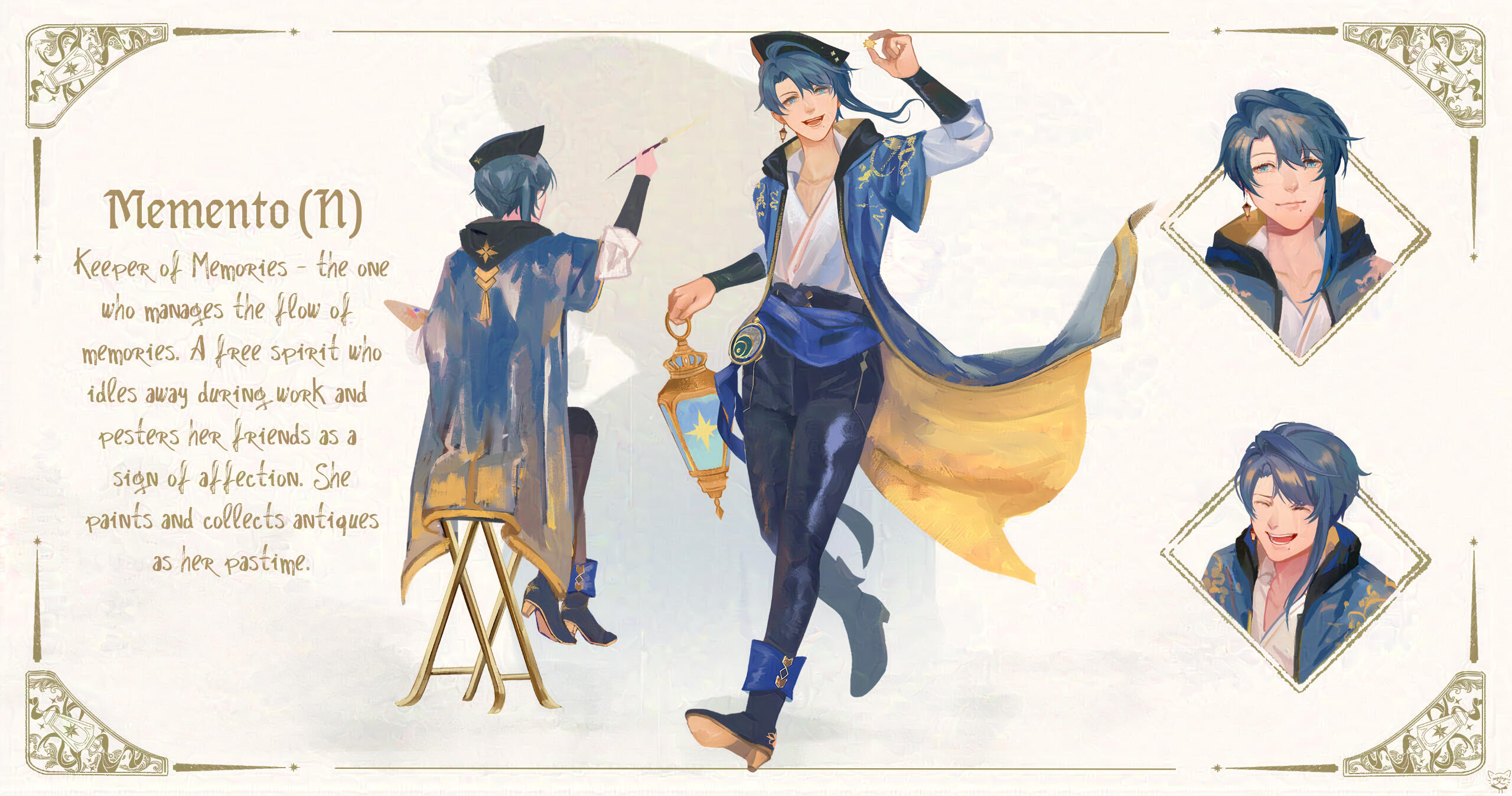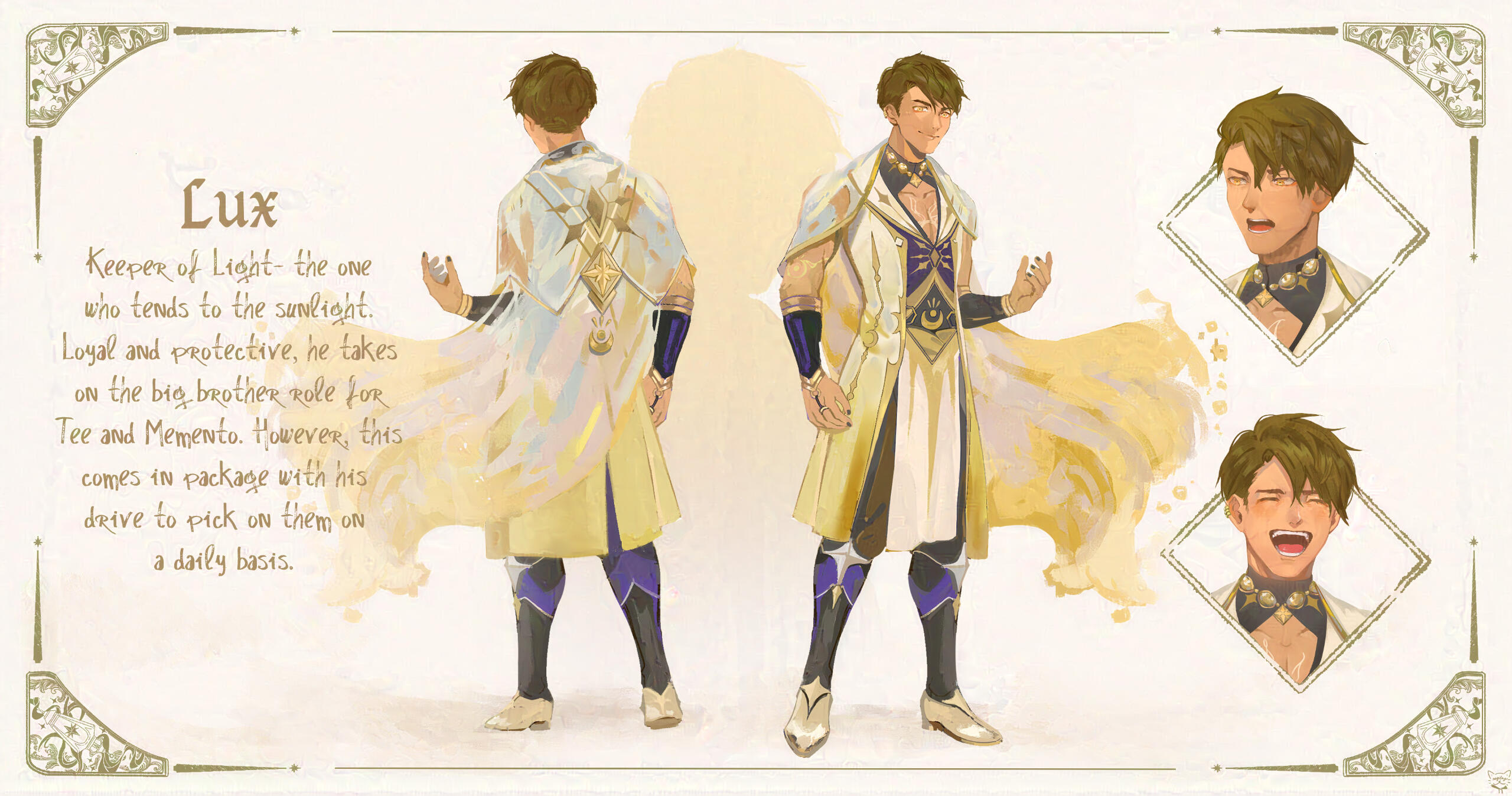 ⬥ Custom reference sheet curated and painted with the utmost care for yours truly. My specialty lies on young adult characters, fantasy and modern designs.⬥ By default, this commission comes with two fullbodies, three headshots and graphic background. Further customization may be added upon request.⬥ Canvas Size: Custom, starts from 2000 px, 300 dpi.