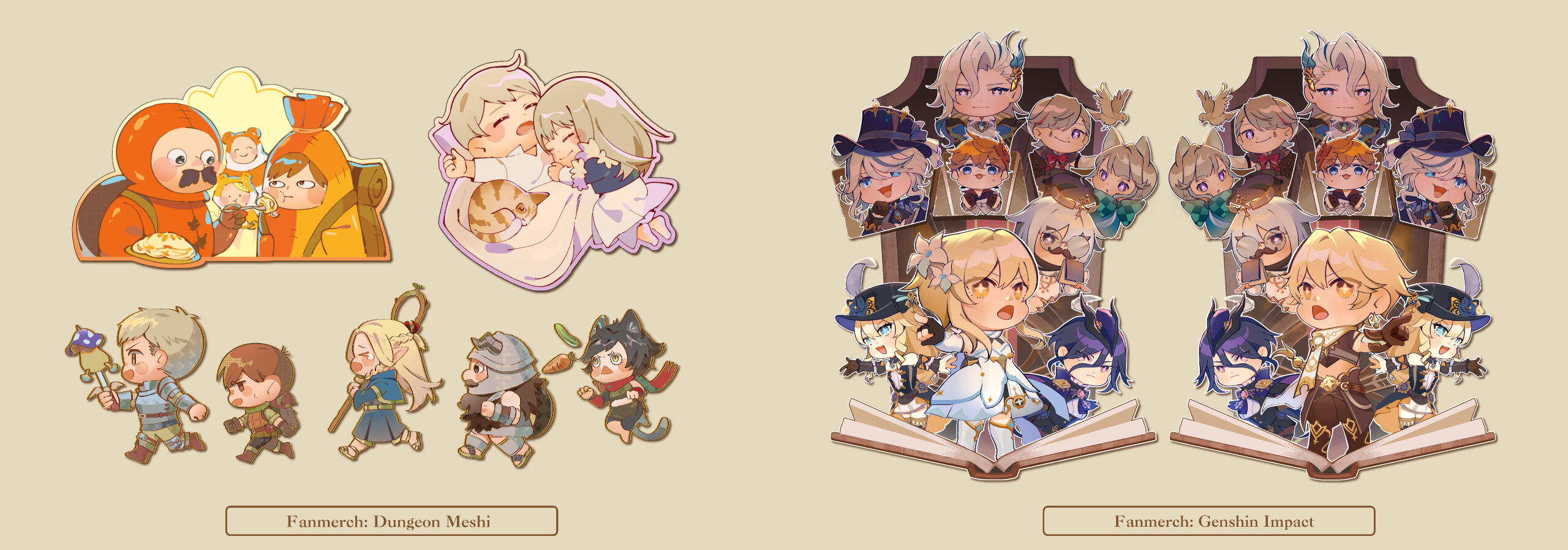 Various chibified fanworks from medias the artist have enjoyed, and some were made into merchandise!